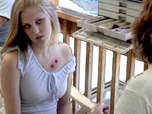 ![]() Amber gets a couple of bite marks applied by spfx guy Rob Merickel |